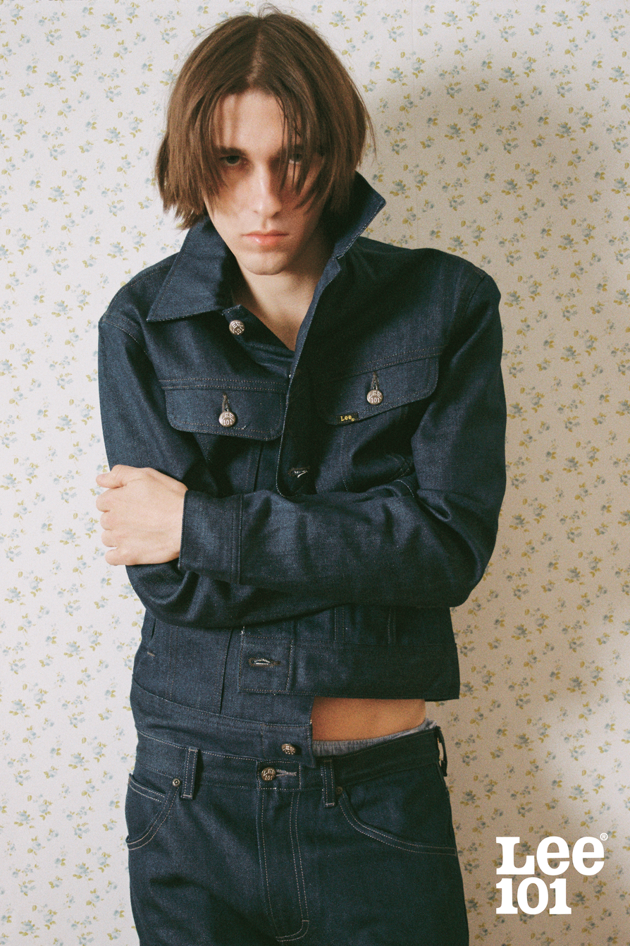 The campaign has been developed alongside creative director Patricia Villirillo, who built a landscape grounded in intimacy and restraint. Angela Suarez shot the new Lee 101 hero artist TRISTÁN. His music blends elements of pop, reggaeton, and experimental production, often developed through a collaborative and intuitive process. He is also part of RusiaIDK, Madrid’s most exciting collective. A lived-in domestic space unfolds under a golden sun, breathing warmth into every image. Floral wallpapers, deep indigos, and warm browns move in quiet alignment with the denim treatments, reinforcing the artisanal positioning of Lee 101. The result is a series of images that feel both immediate and suspended—fragments of the present, where youth culture absorbs heritage workwear and redefines it as its own