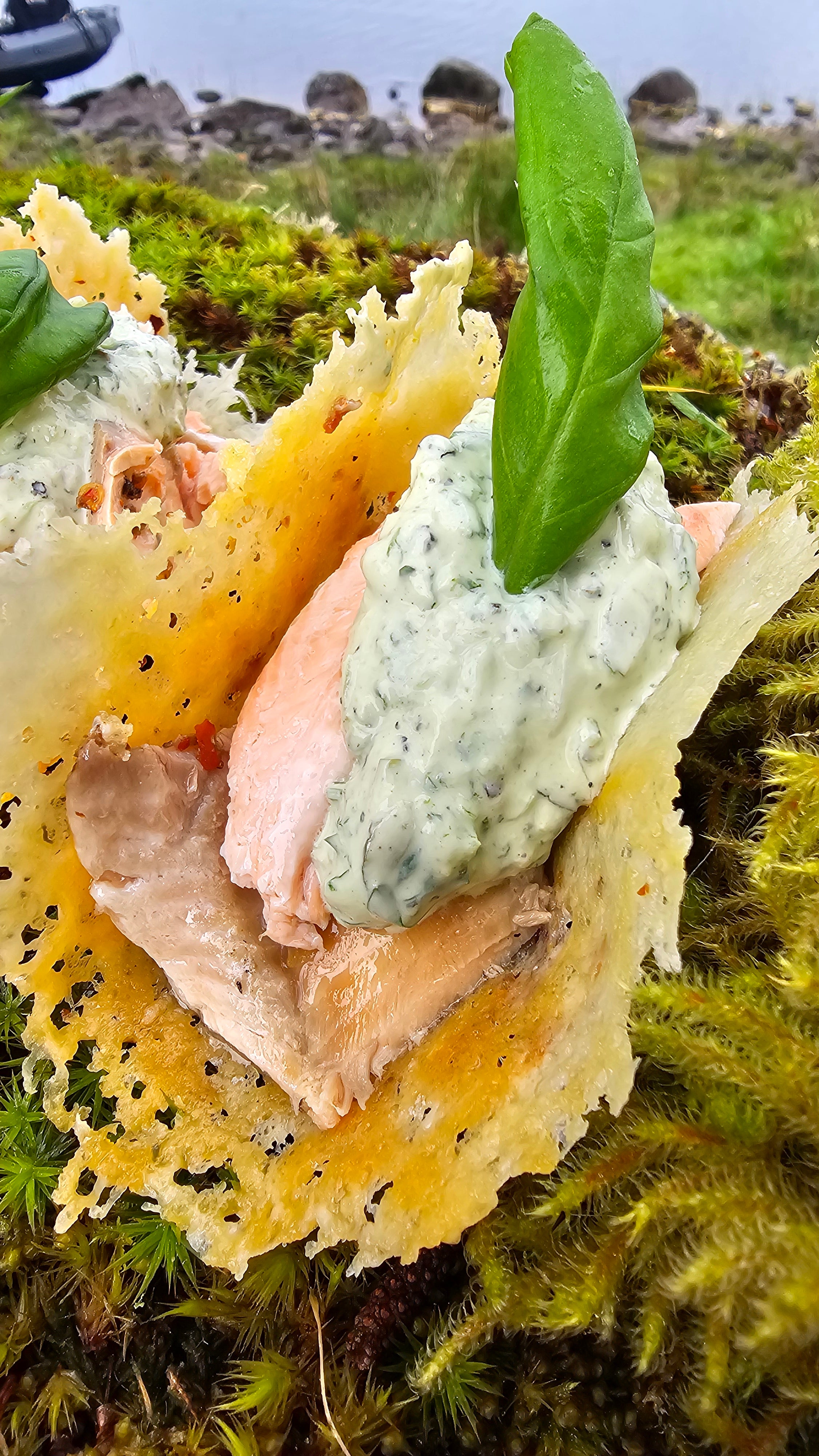 Different shoes now, different dish too. They are sporting Snowclogs and cooking fish tacos this time. The scenery has changed, we’re at a lake and can see Salomon Snowclogs glide effortlessly on a number of rocks before arriving at shore.