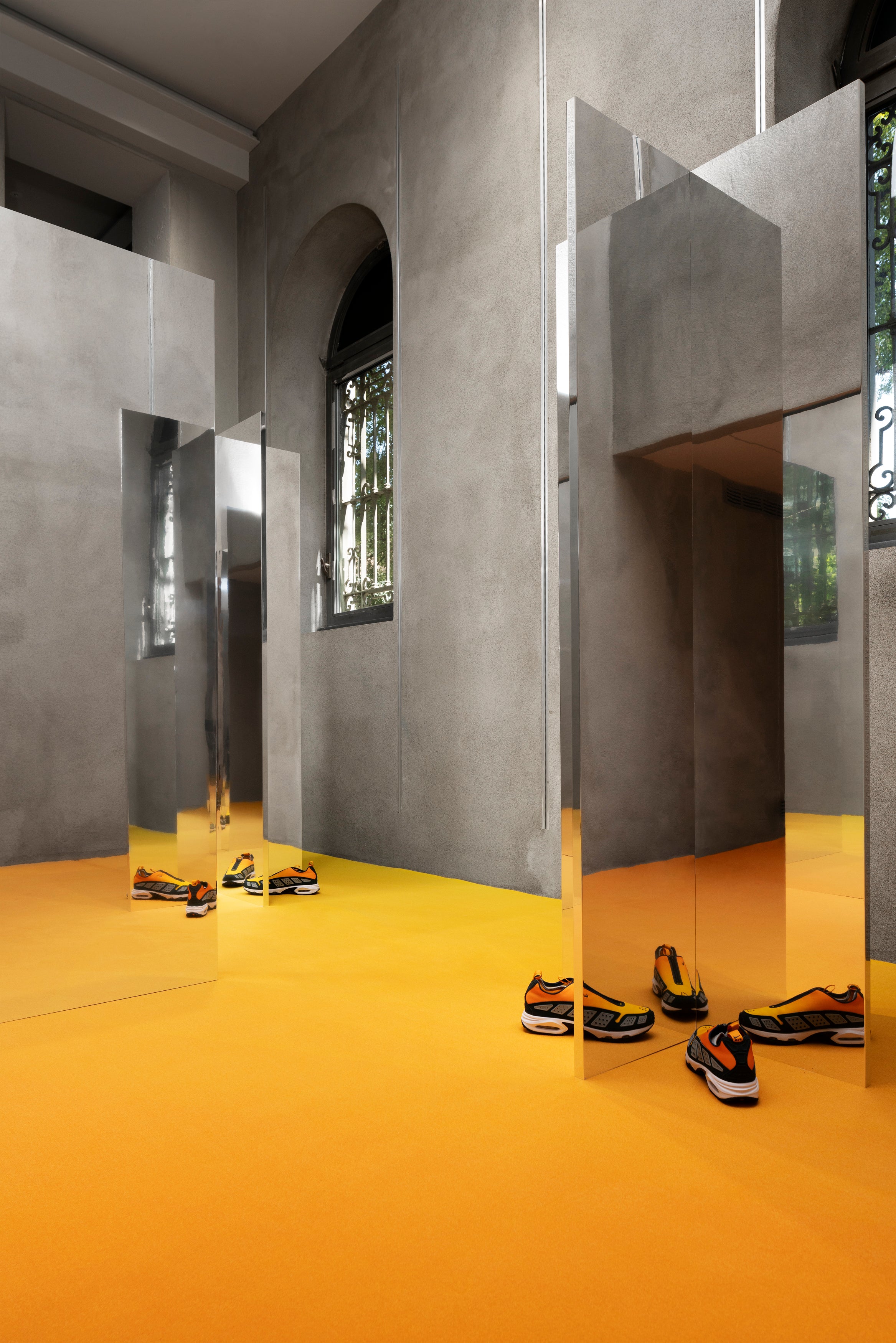 Slam Jam presents the Nike SNDR silhouette aiming to reimagine reality with an immersive in-store installation by Milan based artist Davide Stucchi. A set of mirrors push the boundaries of your imagination, creating a striking visual impact by playing with the environment.