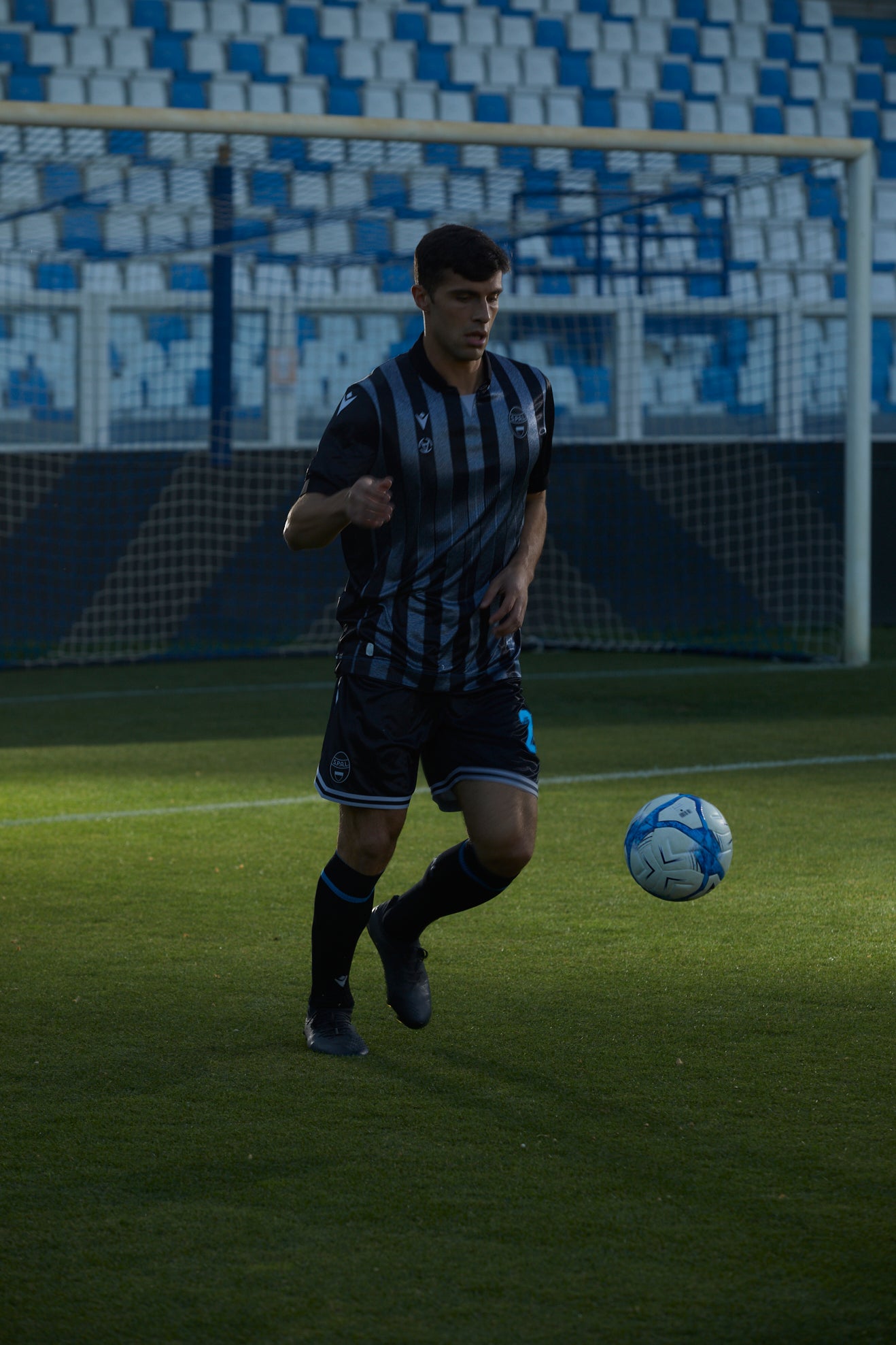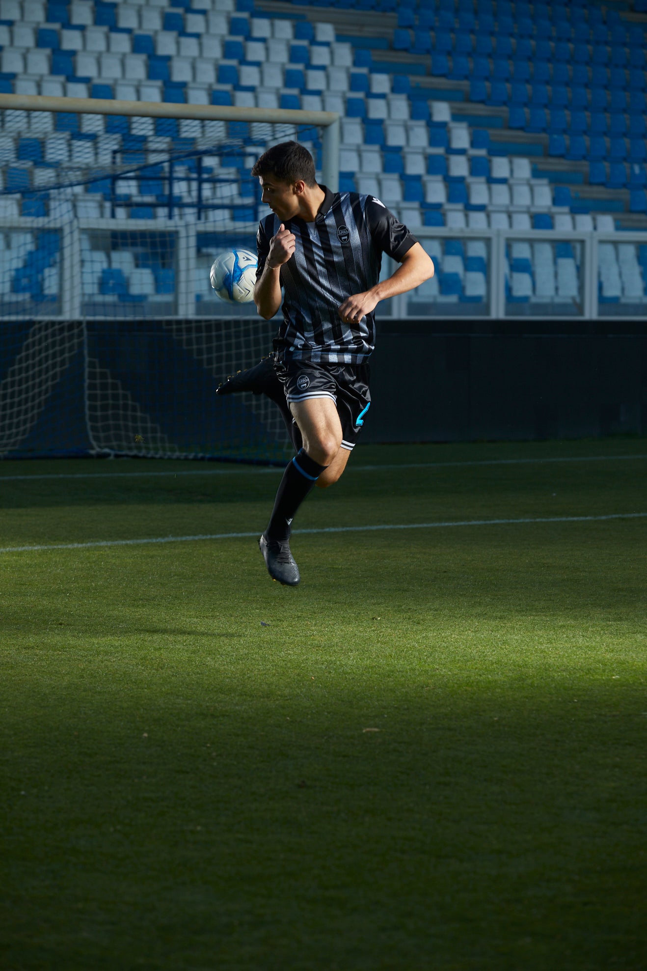 S.P.A.L.’s new ‘Away’ game jersey is designed in collaboration with SLAM JAM. The club’s new 2024/25 Away shirt maintains all the traditional references but revisits them in a modern and innovative key, with clever graphics and a distinctive design. The polo-neck shirt has knitted collar and cuffs and features the classic S.P.A.L. stripes but in black and silver and with a “Noise” effect background. The inside neck is customised with a black label with silver border, bearing the SLAM JAM logo and the S.P.A.L. badge with the motto ‘Ars et Labor’.